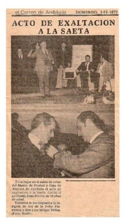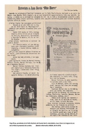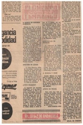 - Periódico ABC Sevilla de 1972 en la divulgación del VI Festival de Cante Grande de Puente Genil, “La insatisfacción inexplicada”.