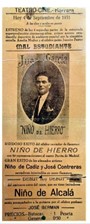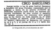 Este mismo año apareció en el cartel del Teatro Gran Capitán junto a Manuel Vallejo, Niño de Alcalá y Niño de Aznalcóllar. Para posteriormente actuar en Circo Barcelonés también con gran éxito.