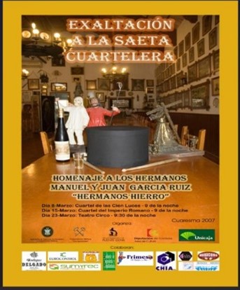 - Homenaje a los hermanos Manuel y Juan García Ruiz. Hermanos Hierro. Exaltación a la saeta cuartelera: Cuaresma de 2007. Puente Genil (Córdoba)