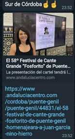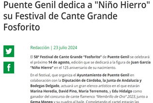 Pie de figura.- Diversos medios de difusión del Cartel anunciador de la presentación y Cartel del 58 festival de Cante Grande Fosforito en Memoria y Homenaje a Juan García “Niño Hierro«.