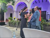 - En este acto se realizaron diversas entrevistas por parte de Onde Cero Radio. La del presentador Juan Ortega (minuto 3.35 ), de Álvaro de la Fuente. (minuto 5.42), que fue el encargado de glosar al cantaor la figura del cantaor homenajeado y del artista pontano Mario Quero (minuto 1.50), que explicó el significado de dicho cartel.