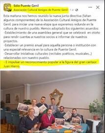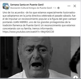 Pie de figura. – Notas de la Asociación Cultural Amigos de Puente Genil tras reunión de su Junta directiva en la que se propone impulsar el reconocimiento popular a la figura del Cantaor Juan Hierro