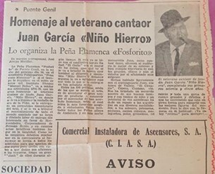 - Homenaje de los Cantaores Locales a Juan García “Niño Hierro” en Puente Genil. 11 de julio de 1980.